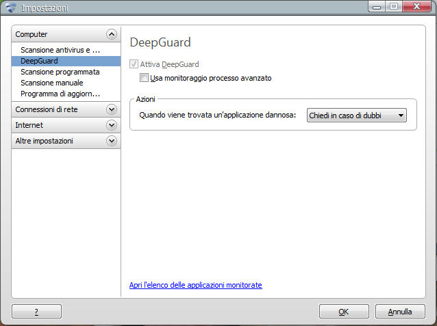 Messaggio di Avviso DeepGuard: Applicazione bloccata