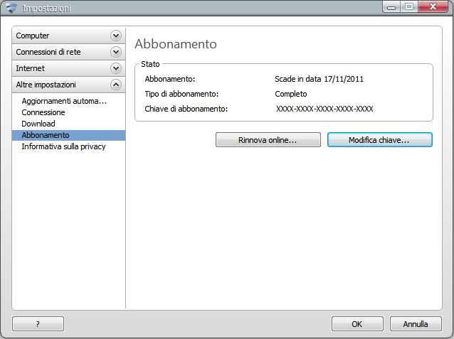 Messaggio di avviso: "La sottoscrizione scade tra xx giorni"
